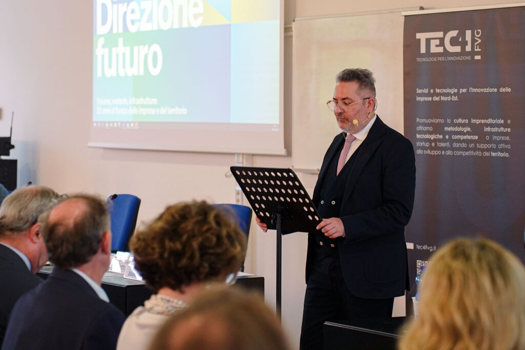 Oltre 120 partecipanti, una giornata interamente dedicata al futuro dell’innovazione in Friuli Venezia Giulia, un percorso lungo 25 anni: è questo il contesto in cui si è svolto “Direzione Futuro”, l’evento organizzato da TEC4I FVG per celebrare il proprio anniversario. A moderare l’evento è stato Gabriele Gobbo, autore, divulgatore e vicepresidente del Digital Security Festival, che ha guidato la giornata, i panel e le tavole rotonde.